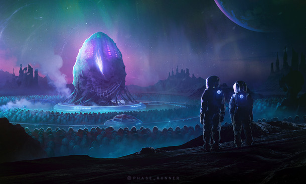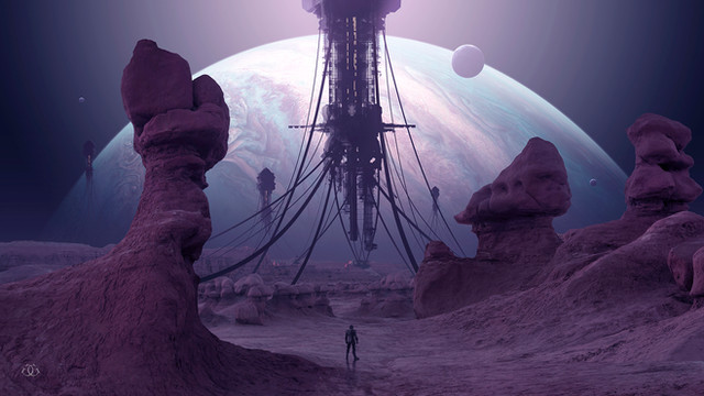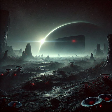#alien #dark #explorers #gloomy #landscape #planet #terrain #scifisciencefiction