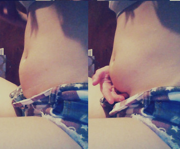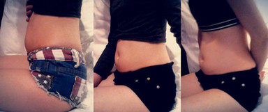 It's not too big a difference but incase you guys wants to see, the left is now (empty belly) and right is old posts. Top is my old flag shorts (now they are so tight it's hard to button them up and walk around), bottom is my newer black shorts, but they are starting to get a little tight too now.Related content