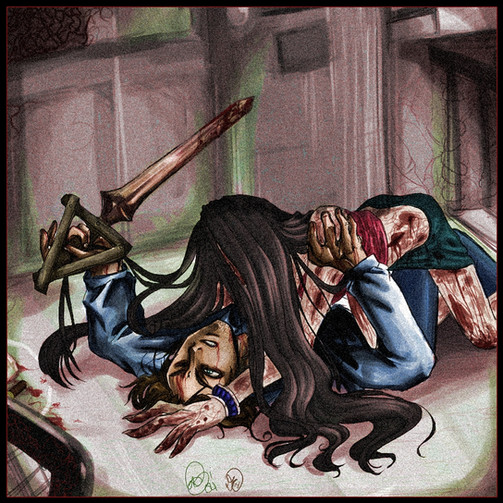 Why thankyou! The pose was hard to figure out, especially since I ran off of no refs. And the textures are from Silent Hill, ~professorhojo stole them from a promo image. XD He's a little brat.