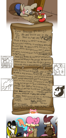 Turns out Ralts' penmanship is WAY different compared to Chikorita's, huh? It turned out that I had to do a lot of thinking in order to realize what Ralts' writing ability really was. This letter summarizes the events of Ralts and Bandit's ??? Mission 7 (Past) entry, for those who still haven't read it yet.