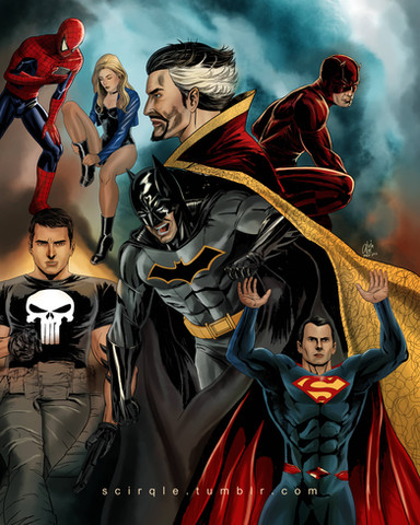 Spider-man, Batman and David Tennant Doctor Who facing off against the Green Goblin, a Slavine and Heath Ledger Joker in a multiverse showdown/Super crossoverRelated content