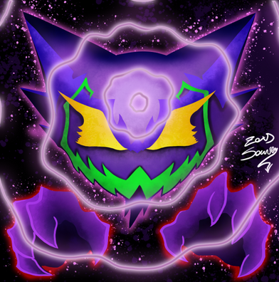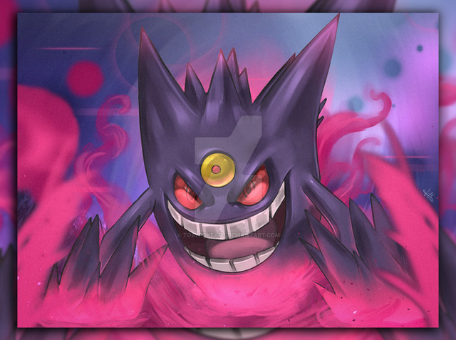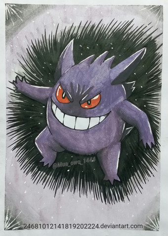Mega Gengar was the only mega evolution that I used in my Pokemon X. I just LOVE him.and what better reason to draw him than the new Phantom Forces TCG expansion + the shiny Gengar distribution for Halloween!