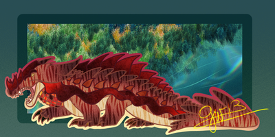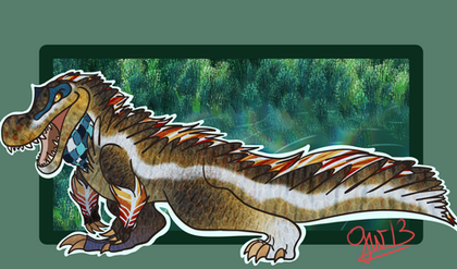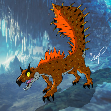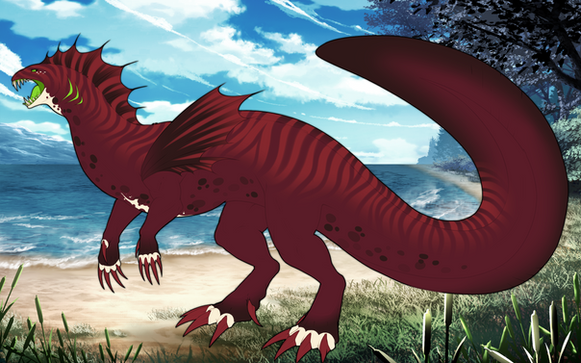 The Diplotator is the hybrid of the amphibian Diplocaulus and the spinosaurid Irritator. It was originally created to attract more attention to the park as part of a project. It is a large amphibian, rivaling even the largest of crocodilians. It is very adapted to the water, with a strong tail, a sail to help it maneuver through the water, and a frill that’s runs down the length of its entire body for staying afloat. It has a feisty and aggressive personality, being extremely violent at times. There has been, until now, 5 casualties from this guy. It is highly territorial as well; it doesn’t help that it is surprisingly fast. It has a ginormous head compare to its body with spikes coming out of the end of its head. That ginormous head is mostly just jaws, a strong one at that rivaling the T.rex. Upon further study, we have discovered that it has 2 types of teeth: the set at the front are conical teeth, perfect for grabbing on to fish, the second set in the back are serrated teeth, perfect for tearing flesh from the body.It is 30cm( 1ft ) tall, 6.2m( 20.5ft ) long, and weighs 1,500kg( 3,300lb ). It feeds mostly on large fish, but it will also eat small animals that got into its enclosure and medium sized animals like deer. It eats like a monster, its giant head tearing through flesh and eating giant chunks whole. It is an absolutely awe striking and terrifying sight to see. It was to be expected since most amphibians also seem to have a black hole in their stomachs. Unlike the previous specimen I talked about, the Pelicanipteryx, it doesn’t require much attention or care other than feeding and checking its giving it proper sunlight. Its noises are also not as loud as the Pelicanipteryx, but they are still quite scary. It hisses, bellows, and grunts, all of them being very deep sounds that one can sometimes feel the vibrations. I also must say that it is a complete loner; it does NOT like attention, do not look it in the eye, it’ll think you are challenging it, trust me you do not want to see it angry.