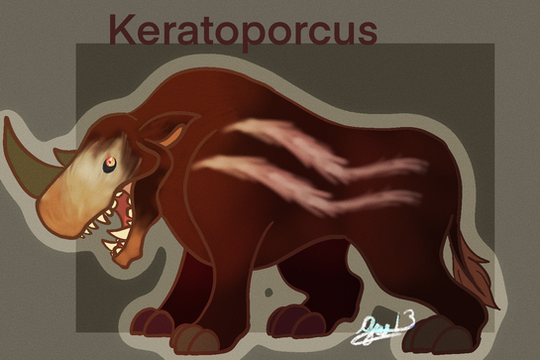 Hybrid of Entelodon and Woolly Mammoth form JWAEntelomoth is a fierce and opportunistic hunter. It has acute hearing inherited by the strong ear muscles from both its parents. It is able to rotate its ears 270º and is able to pick up any sound, no matter how minuscule it is. It has a huge rump on its back filled to the brim with muscles that allow it to move and support its heavy head. It also uses its trunk to sniff out any prey or food nearby, and, with the help of its tusks, it is able to dig out any roots or animals that tried to hide. It is incredibly bulky and heavy as well as fierce and intimidating. This is one hybrid you do not want to mess with.