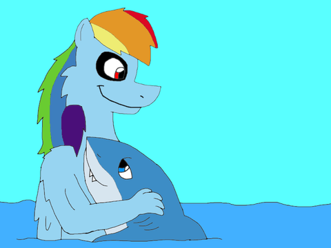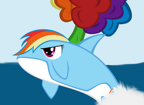 Rainbow Dash must have some pretty iron lungs to blow that sucker up. The shark is almost bigger than her!