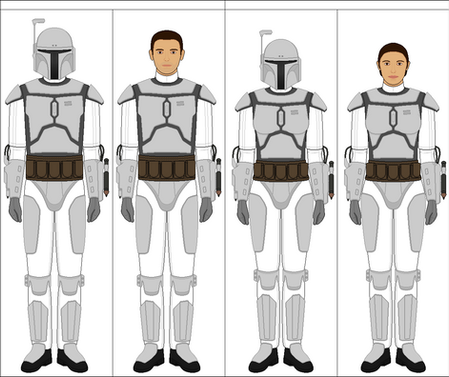 I've always had difficulty tracking down a specific image like this, so I took the liberty of putting one together and sharing it here. I spotted numerous errors in the female armor and have corrected them to the best of my ability.Credit to the following: