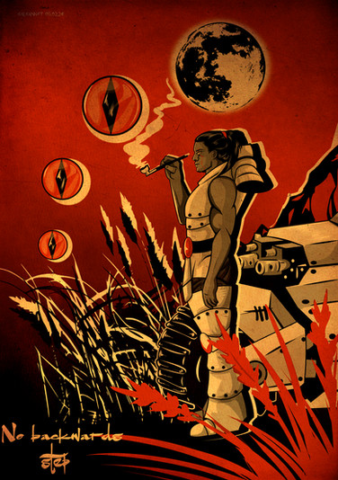 I LOVE this. It looks like it's part of an old, leather book cover or something; that background texture is really cool. The warm browns and oranges really make this pop, and I love the basic, illustration style.