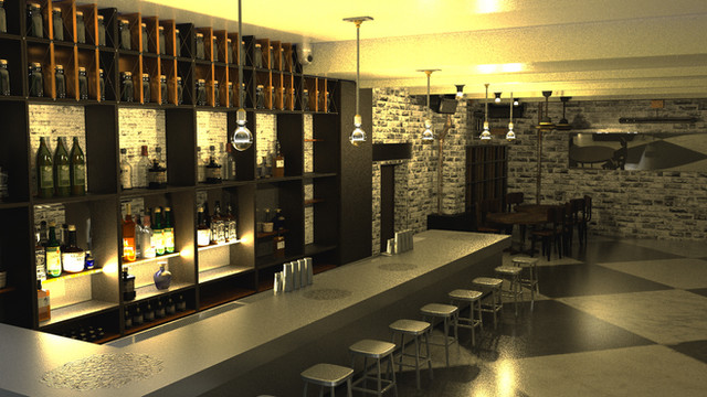 Pool Lounge is a model of a Pool Hall/bar. There is a full sized pool table, pool cues for short, average and tall, cue rack,correctly numbered pool balls and rack. A seating area with a couch, chair and table, bar with movable taps and stools,
