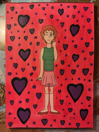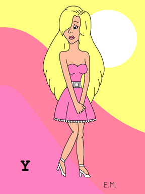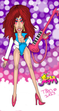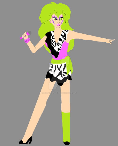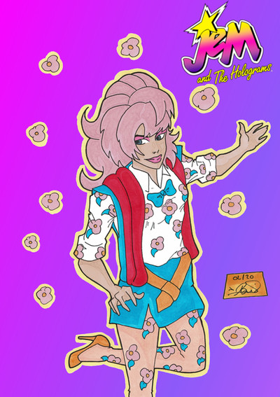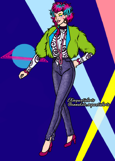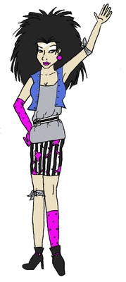 This woman is from the cartoon named Jem & The Holograms. Well, her vest is so hard to draw, so I need to practice more next time. Oh well, it looks okay though.So here name starts with R - which is Raya, a.k.a. Carmen Alonso.