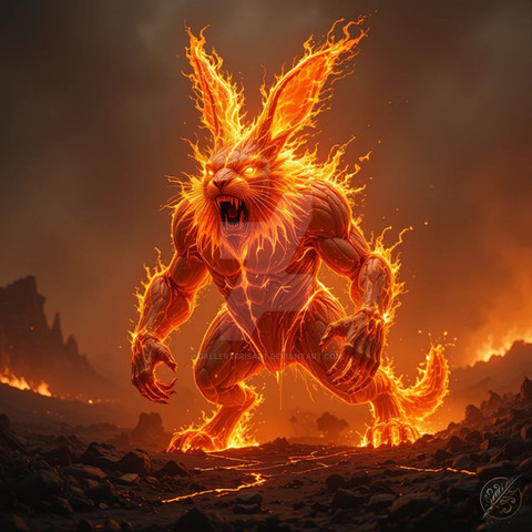 #characterdesign #fantasyart #monster #bunny #rabbit #digitalart #fanart #ai #anime #background #character #design #digital #gallery #game #image #landscape #ninja #portrait #wallpaper #warrior #art #fire
