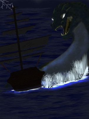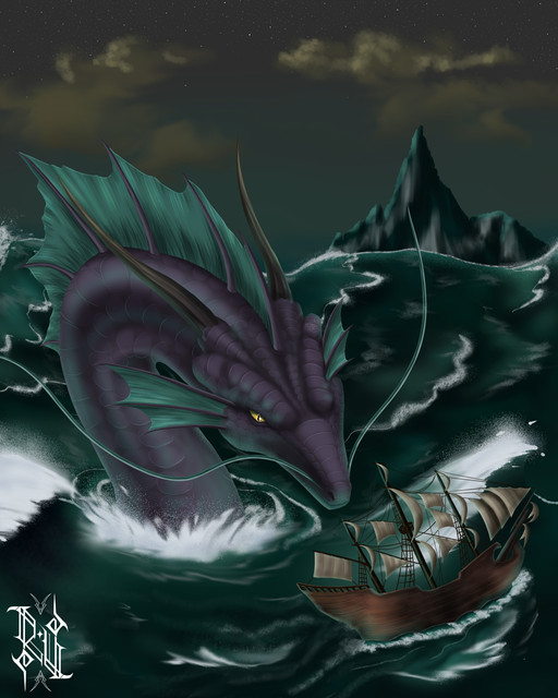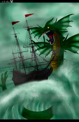 Look! I drew Olashi! The fierce and cruelly aggressive Olashi, who's name means 'Evergreen.' Here they are blasting icy water over the deck of a ship. The mast is broken, and the sail is in the water, and I don't think the boat is gonna last much longer. But anyway... Tried to give lighting details on the scales.No re-uploading without permission, no claiming it's your's, if you use it for something please credit me, No selling at all, ect... In general, no stealing. Or I'll send Olashi to slither up on land and slay you, mwa ha ha ha ha...