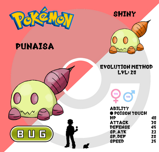 HP 35 | Attack 30 | Defense 20 | Sp. Attack 30 | Sp. Defense 20 | Speed 40 = 175 BST