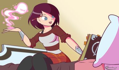 What could Grey be thinking about? Or maybe she's just bored. Who knows. I just wanted to do a drawing of Grey sitting.Grey is an OC by