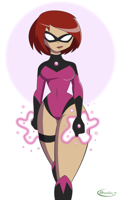 Just another little sketch of Red!Β I was also experimenting with a couple things, such as the outline. Another is the pattern on her suit to show that it's made out of material that also changes when she uses her powers. But I'm just messing around with that idea.
