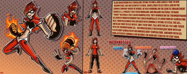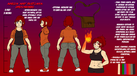 Character guide for my OC superheroine, Red.Related content