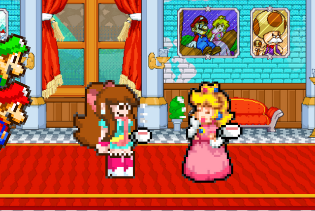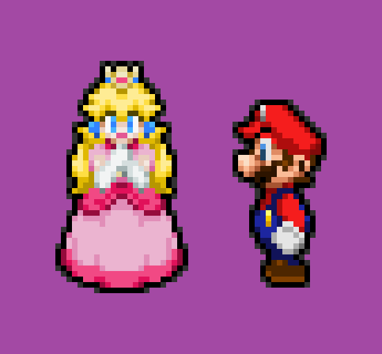 Princess Bubblegum and Princess Peach are gift-exchanging this year. By the way, for those wondering, PB is currently smiling.Original Sprites by Nintendo, HAL Laboratory, Creatures, AlphaDream, Cartoon Network, Frederator Studios, WayForward, KingAsylus91, and Novally.
