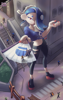 I've been meaning to draw something Splatoon for a long while, but I didn't. Mainly because I didn't own the first game and how my mind works in these kinds of things.But odd how my first drawing wouldn't be of say, Marina, Pearl or even the Squid Sisters. It's Flow. One of the new shop keepers in Splatoon 2.