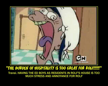 Rolf: "YES! Sorry Ed Boy!" (closes door)