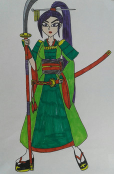 Yet another female Warriors character grabs my attention. Ina (or Inahime), daughter of Tadakatsu Honda. Expert in Archery, and may i add, sister-in-law to Yukimura Sanada.My first attempt, well..its okay i guess. Could use a little work on the eyes i know, "what the heck was I doing?" Well, to be honest i was trying to sketch a different view point of the face. You know, one side of the eye is bigger than the other and such. Yeah, that's what i was trying to do. Don't worry, i'll get better soon, and i'll probably remove certain prop parts to make my life easier to sketch her.