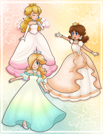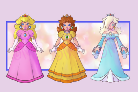 So the Mario movie is out!! I haven't seen it yet ehfrsueh but! I did see some Peach and Daisy redesigns floating around that inspired me to do my own, plus a lil Rosalina. Funnily enough this wasn't my original idea, I WANTED to draw them all in casual clothes but my hands kinda slipped and this happened instead. I think it turned out just as good <3Related content
