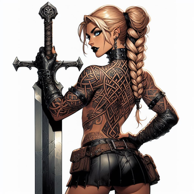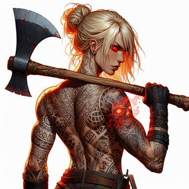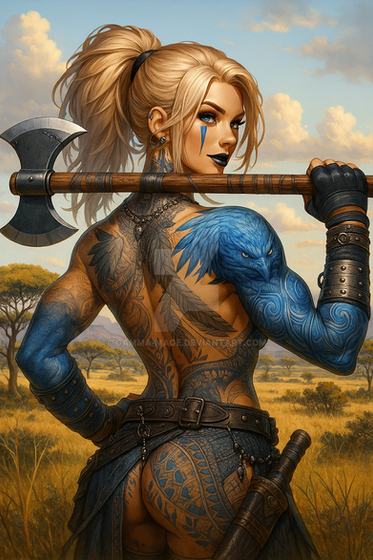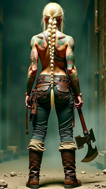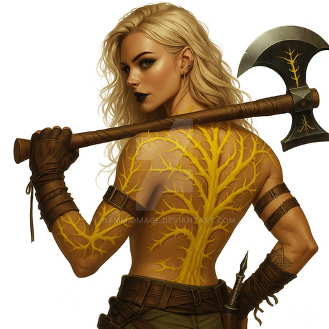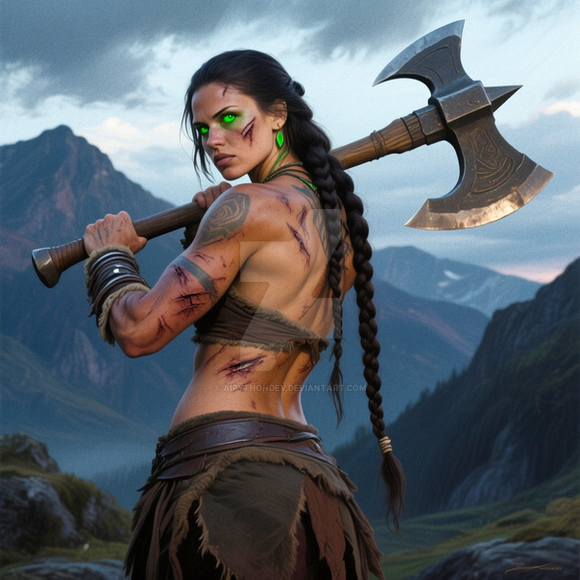 #ai #axe #axegirl #bareback #blacklipstick #dungeonsanddragons #fantasy #goth #gothgirl #hunter #leather #leathergirl #musclegirl #muscles #pathfinder #ranger #tattoos #topless #viking #vikinggirl #aiart #ai_art #bing_image_creator #dall_e3 #rangergirl #tattooedgirl #tracker #treehugger #huntergirl