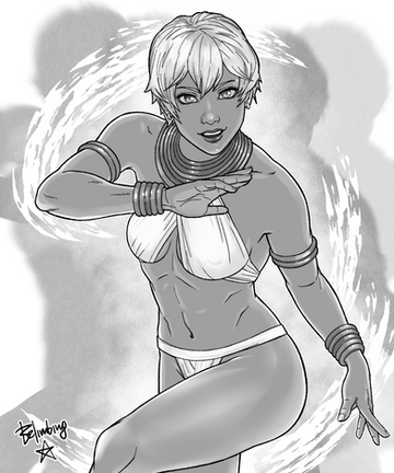 Yo, thanks! I wanted her brown ass to pop against the sky's blue ass. She looks kinda like a whack-a-mole though the way she is like OFGMMdf flying through the air. I'll do Elena right one day.