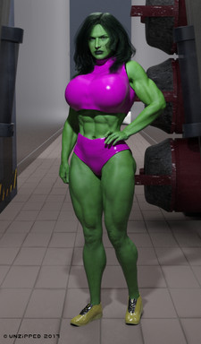Wanted to make my own She-Hulk character in Daz. Here are the resultsI tried to make the costume reminiscent of the Sensational She-Hulk #1 cover.