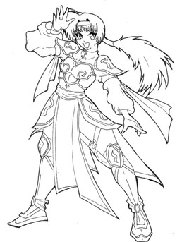 Se me hace un personaje muy desaprovechado, pues bien manejada, podria quitarle el protagonismo a Kagome (es cierto que se apellida elpalo?, bueno), quise ponerla un poco coqueta, le puse tintas, pero el mendigo papel lo disperso, y en el scaneo tambien salieron las lineas del lapiz (esto se nota en full view).Sango, a puffy slayer.