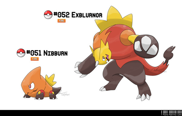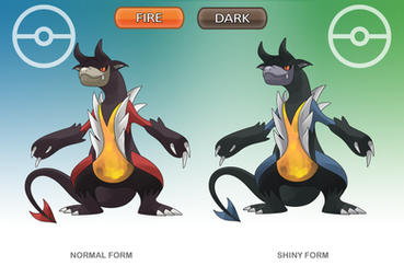 Dex Entry: Inferror use their rock-hard skulls to bash into their enemies and rivals. They dig holes and line the walls with lava to make a sturdy den.