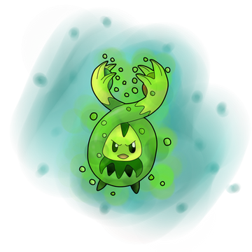Dex Entry: Spideed hide in groups under large leaves. They uses the sprout on their head to collect sunlight.