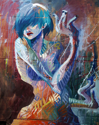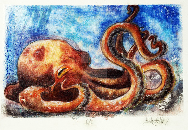 Uhm... yes. This was my first monotype. People can't seem to make anything in it out. It's a chick with a red hood and a fox around her neck. Don't ask me where the bottom half of her face is. I have no idea. Maybe it's a veil. Maybe it's missing?... Iunno.POTATOES!!