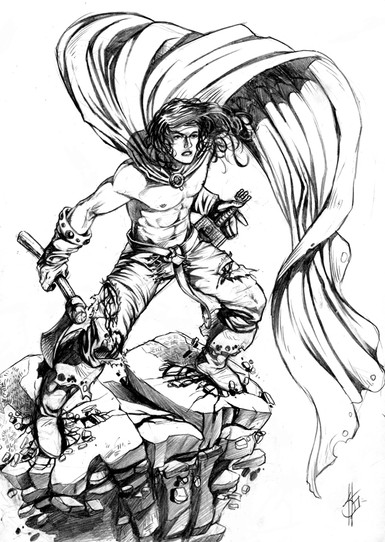 It's a very neatly made sketch, I like the dynamism of the pose and flow of fabric