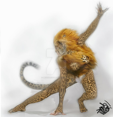 I love to create anthromorphic animals. My creatures are created by first body painting the subject,followed by a photo session in my studio. The photos are then worked in phot shop 7 as I create a plausible composition. All work is created with a mouse .I love to work the fur. It takes many hours and often hundres of layers of work. Alone is one of my favorite. She is a lynx creations alone,maybe last of her kind of her planet.Related content