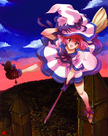This is truely a fantastic piece of art. I love the witch and the colors go perfectly together. I even have the card protectors and a card storage box with this artwork on it and I love it <3