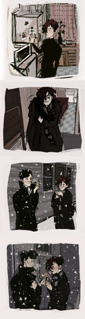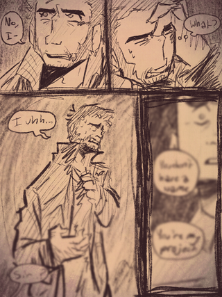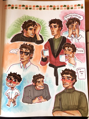 My beloved OC Dylan ♥I think he got stuck in realm where I draw him like this - he wakes up (every time), eats his meal with his folks (every time) and leave in a hurry (every time)
