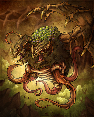 Головы. У него 2 доп. головы по бокам, чтобы лучше видеть. Он как цербер.
