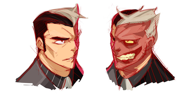 Thank you! Yes i wanted to make him mafia-kind-of-guy. He's not that different anymore because 'both' of his sides are extremely angry at this moment! I wonder why...