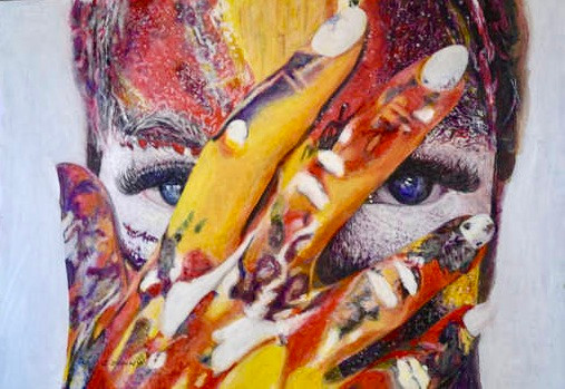 Rémi Planche scrapes the painting with a "spike" for a graphism that looks like engraving.