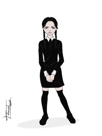 My own version of a much older (?) Wednesday Addams.She was always my favorite character thanks to Christina Ricci and from the cartoon series.
