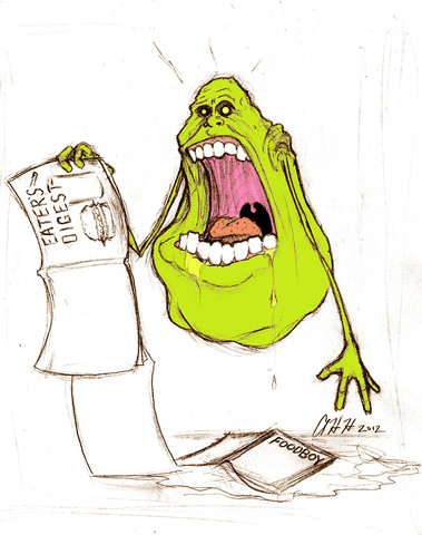 Slimer from The Real Ghostbusters with some Ecto-Cooler!I loved this cartoon as a kid (didn't know the original movie!); I never had a chance to try the Ecto-Cooler drink, though (wasn't sold where I lived).