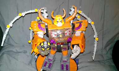 How does the best Unicron look with the worst Unicron as a head? This is how!It's an unholy trifecta of terribleness! Prime Unicron has taken over Haslab Unicron with McDonalds and Energon helping him do it!