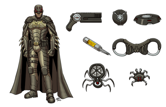 I love the shape of the mask in general, the ears are really nice and the small mouth opening is a good idea I'm surprised isn't done more. Nice work! I also see him using the symbol light to blind enemies, or maybe it has a strobe light feature which makes me think of the scene from Kick Ass