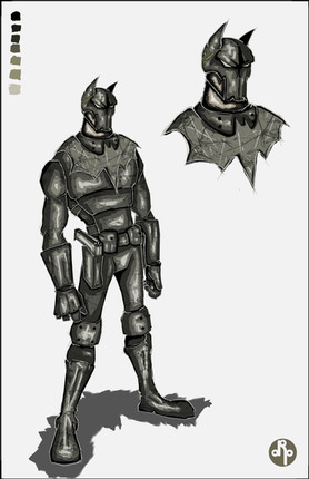 Batman is not only my favorite super-hero if not my favorite thing in general. When I see re-designs of the character I get too judgmental and I don't say good words usually. But I think I like yours, the cowl looks inspired by ancient warrior helmets, the shoulders look cool all pointy like count dracula's and the logo is classic (you can never go wrong using the classic logo) Also no underpants!