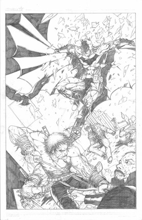 this is cool! I like how Batman's more heavily colored, and the villains are just pencilled (sp?) in.