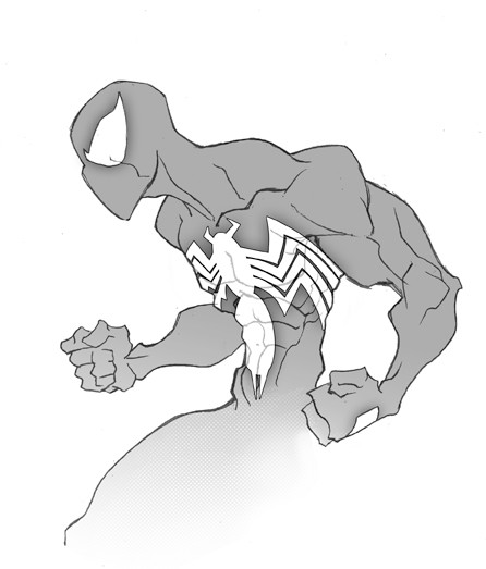 Ha ha, I guess so. You can't really draw Spidey without tipping a hat to Bagley. IMO, that guy has had just as much impact on the character as Ditko, Romita, and McFarlane. I'd say that he is really responsible for Spidey's modern look, if only by virtue of the fact that he's been drawing the webhead for the last 20 years. And yeah, I loved it when Larson would blacken in the blue of Spidey's costume. I just really love the way that solid black and red work together, and those big black chunks also help tone down all that webbing. I'm a big fan of keeping things simple.