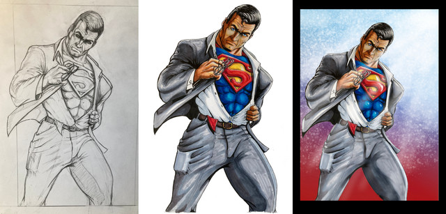 2. Inks, in this case provided by the uber-skilled . I've had the privilege of watching him ink several times, and he uses a sable brush for lines. He also uses Micron pens for straight lines, like that S shield.