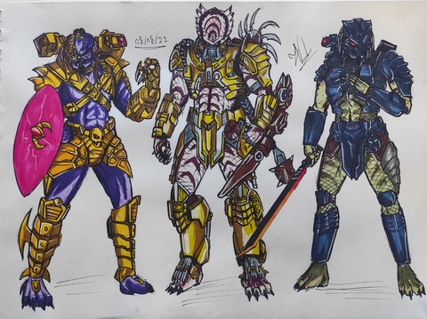 Disc Master is based on the Disc Master unit from Extinction and would be a Hunter class in Hunting Grounds. Out of all the Predators in this story, I figured at least one of them needed to have the classic Jungle Hunter design. But I kept the skull trophies they have mounted on their shoulders from the game. For his ranged weaponry, he uses multiple Smart Discs at once. He stands at 7'2".