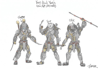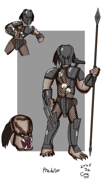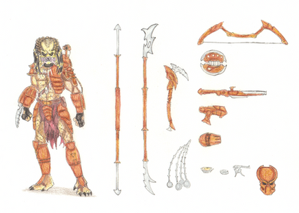 Vanguard is not only the leader of the hunting party, he's also the Clan Leader. He would be a Berserker class in Predator Hunting Grounds. The Vanguard unit in Aliens Versus Predator: Extinction are heavily armored and use a Plasma Scythe. Here, I interpreted it as a khopesh, an Egyptian sickle sword. Though a Berserker, he's more experienced than Brawler and thus more patient in his hunting technique. He stands at 7'6".