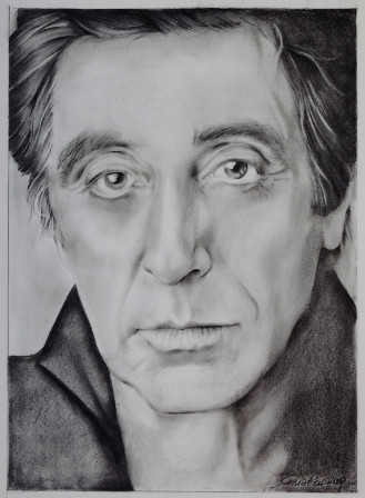 good work i could tell it was Al Pacino. the only thing that bothers me is the eye to left kind of looks like he has mascara on. It's still a good drawing and has a very good likeness of him.