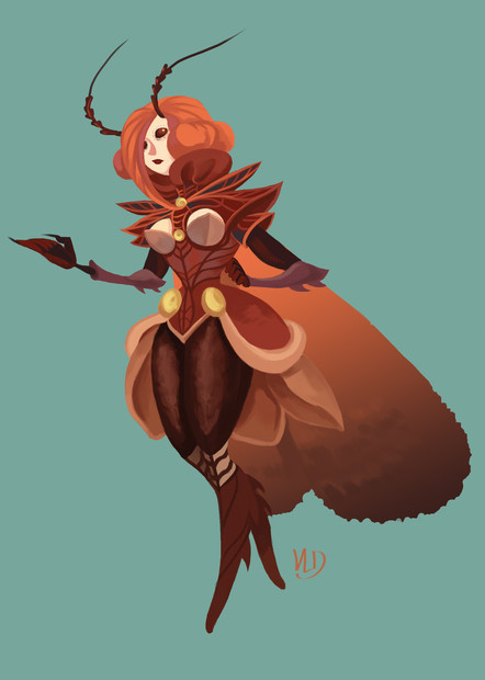 Red insect fairy lady thingA colored sketch from instagram. I couldn't figure out what pose her hands should be in so she just has all of them, lol